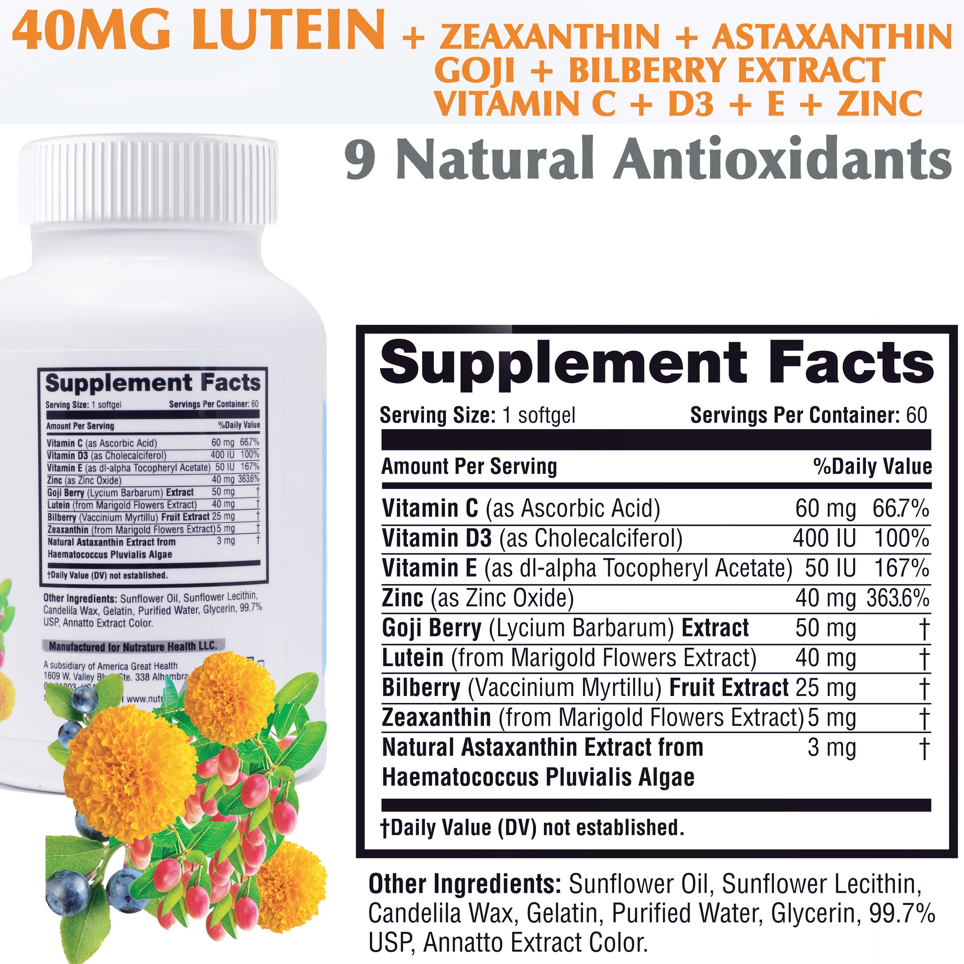 Nutrature Lutein & Zeaxanthin, 60 Softgels